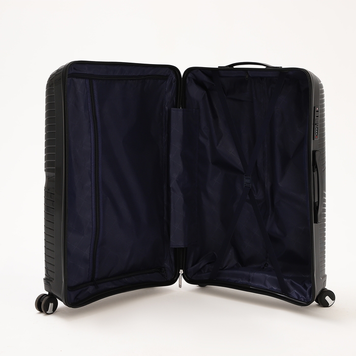Чемодан большой 100 л (L), отдел на молнии, кодовый замок, 4 колеса, цвет чёрный