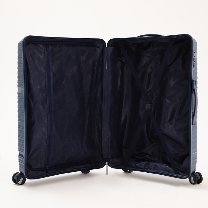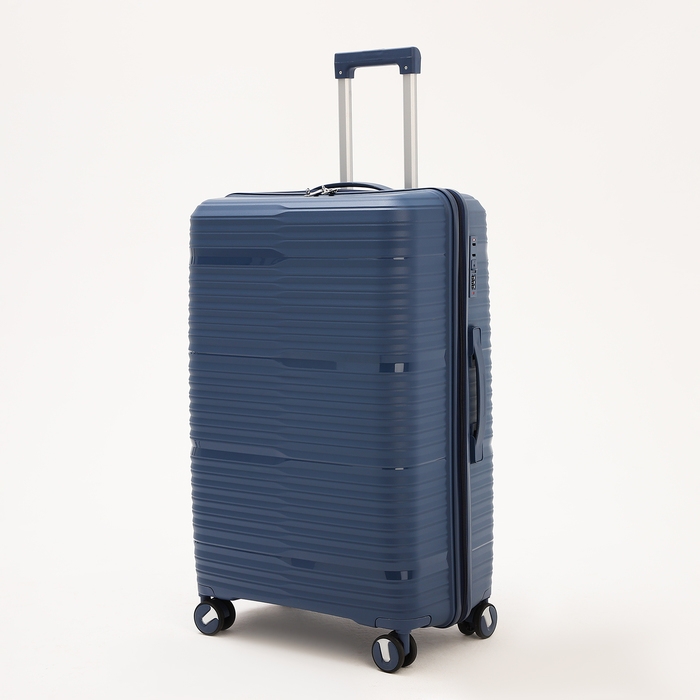 Чемодан большой 100 л (L), отдел на молнии, кодовый замок, 4 колеса, цвет синий