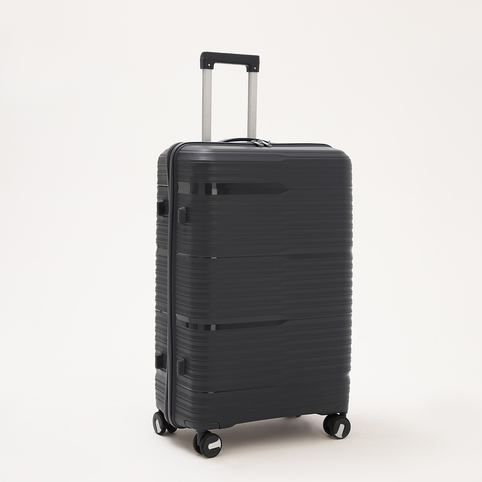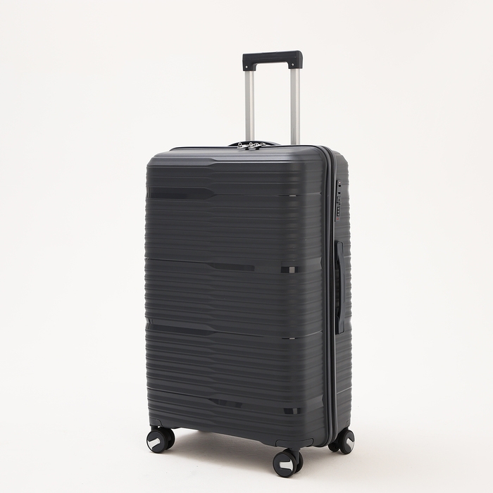 Чемодан большой 100 л (L), отдел на молнии, кодовый замок, 4 колеса, цвет тёмно-серый