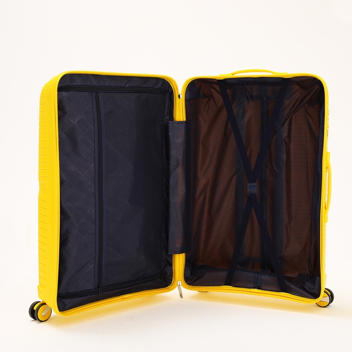 Чемодан большой 100 л (L), отдел на молнии, кодовый замок, 4 колеса, цвет жёлтый