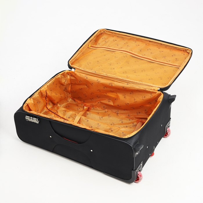Чемодан большой 95 л (L), отдел на молнии, с расширением, кодовый замок, 3 колеса, 2 наружных кармана, цвет чёрный