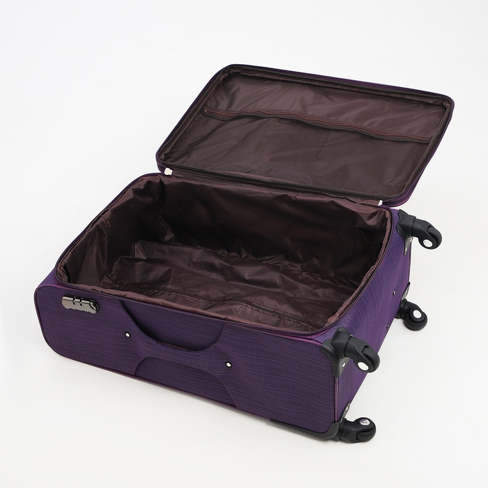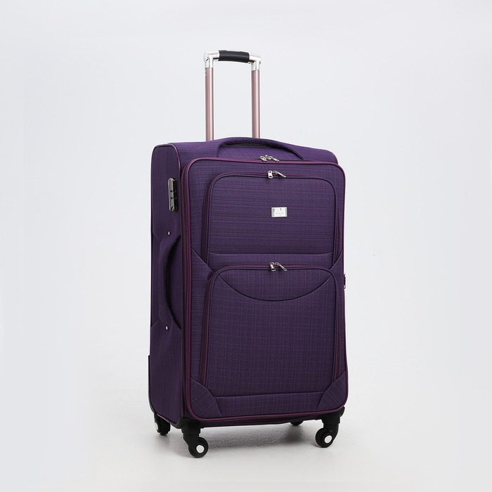 Чемодан большой 95 л (L), отдел на молнии, с расширением, кодовый замок, 3 колеса, 2 наружных кармана, цвет фиолетовый