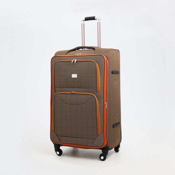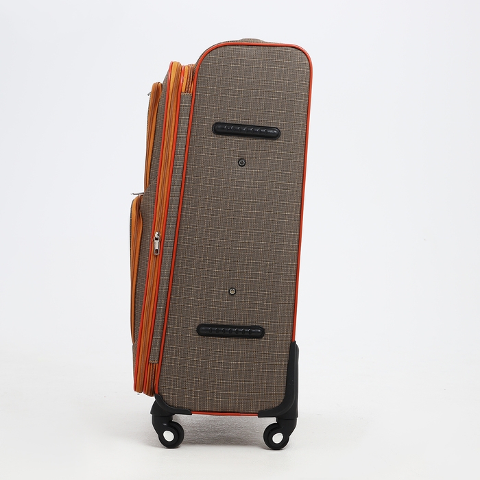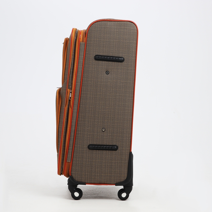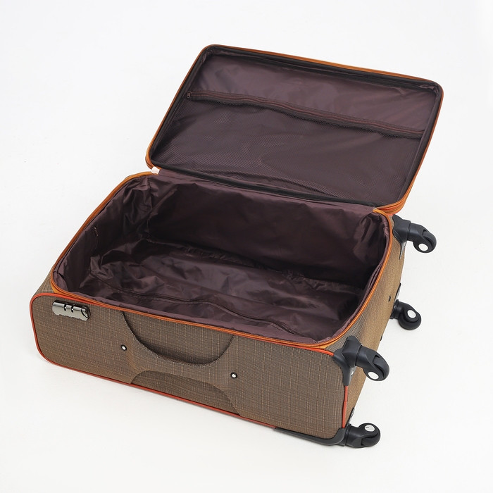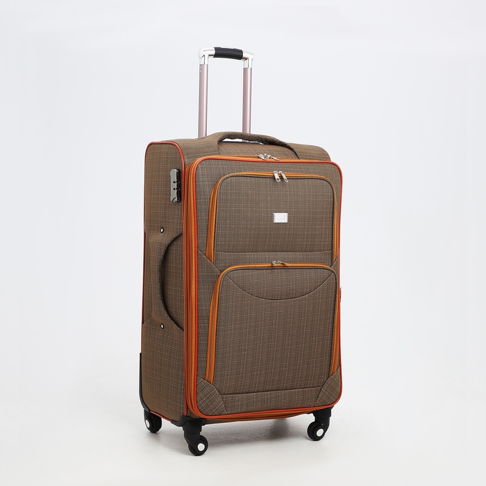 Чемодан большой 95 л (L), отдел на молнии, с расширением, кодовый замок, 3 колеса, 2 наружных кармана, цвет коричневый