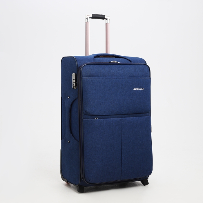 Чемодан большой 95 л (L), отдел на молнии, с расширением, кодовый замок, 3 колеса, 2 наружных кармана, цвет синий