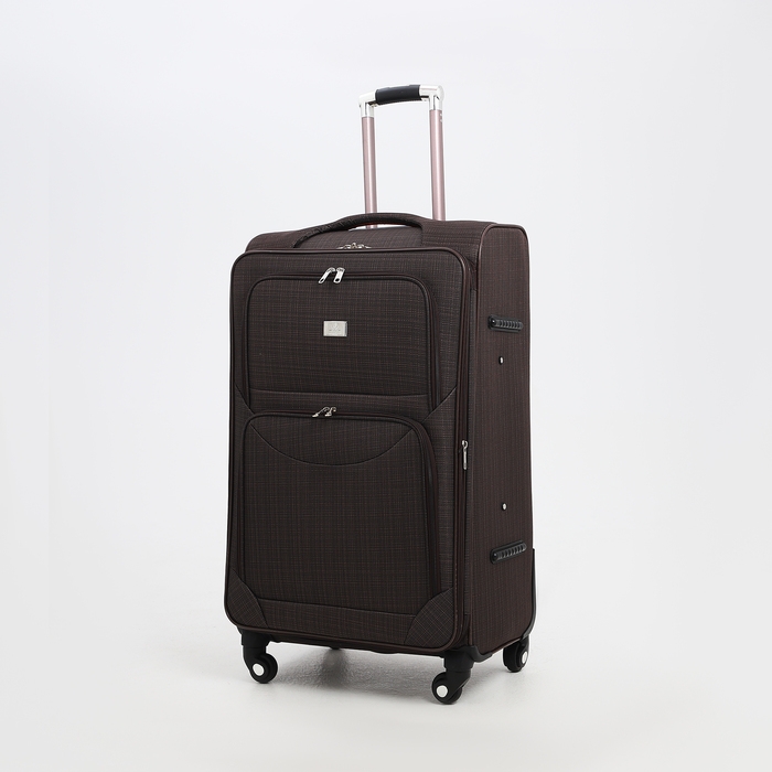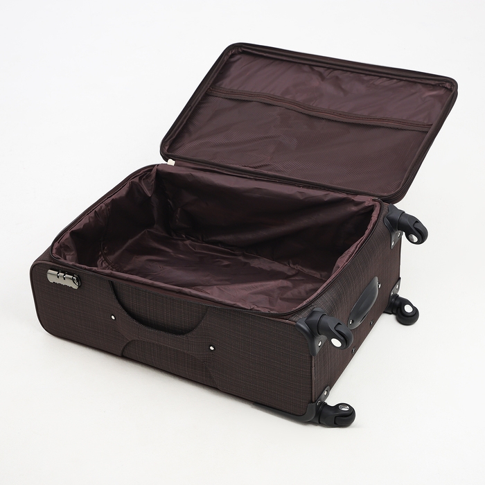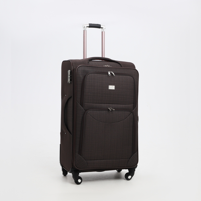 Чемодан большой 95 л (L), отдел на молнии, с расширением, кодовый замок, 4 колеса, 2 наружных кармана, цвет коричневый