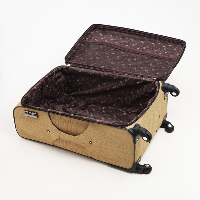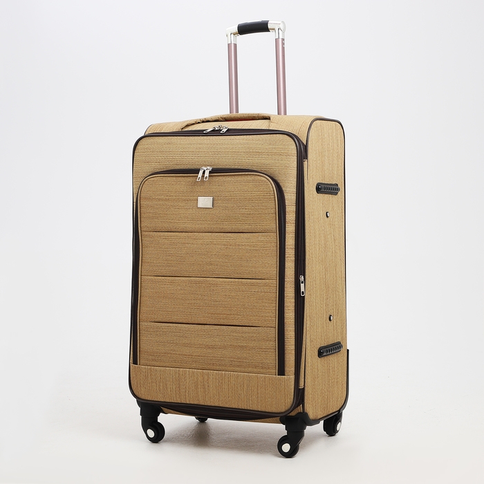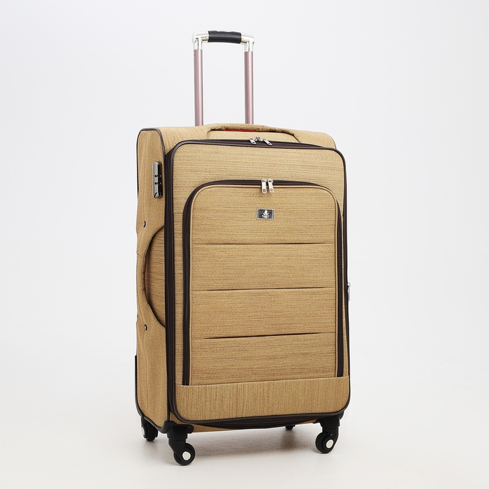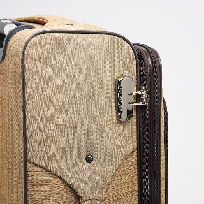 Чемодан большой 95 л (L), отдел на молнии, с расширением, кодовый замок, 4 колеса, наружный карман, цвет бежевый