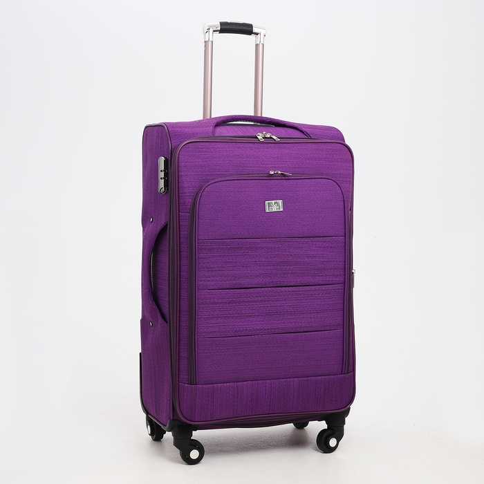 Чемодан большой 95 л (L), отдел на молнии, с расширением, кодовый замок, 4 колеса, наружный карман, цвет фиолетовый