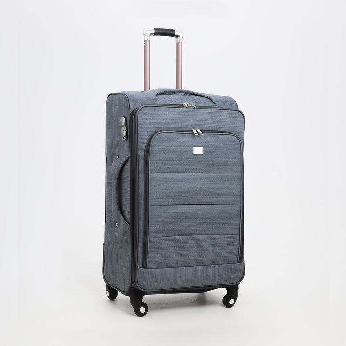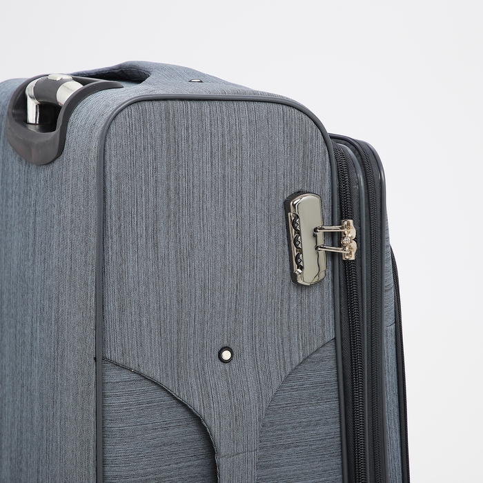 Чемодан большой 95 л (L), отдел на молнии, с расширением, кодовый замок, 4 колеса, наружный карман, цвет серый