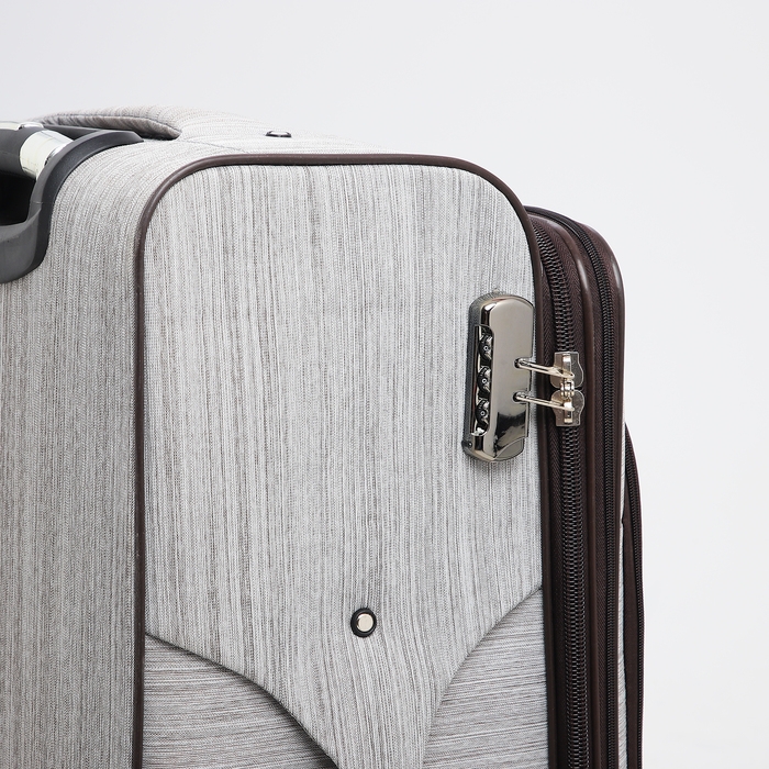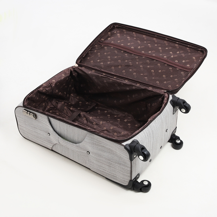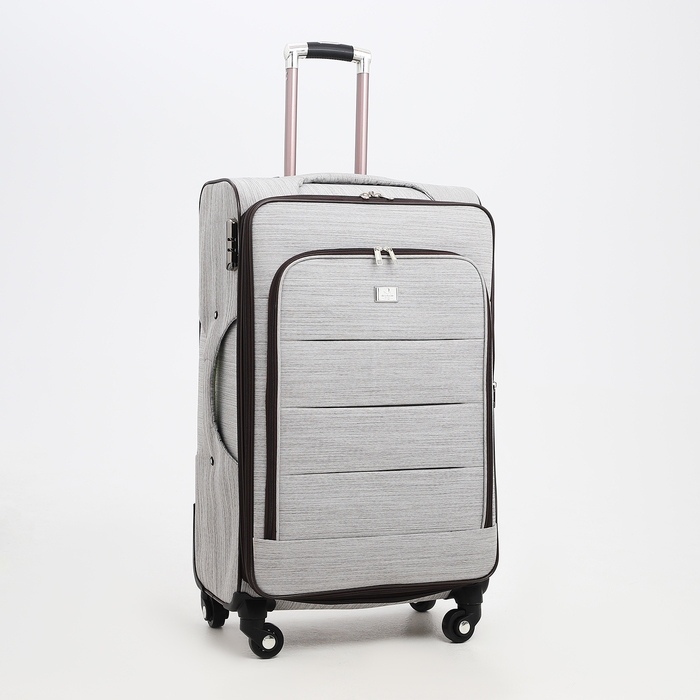 Чемодан большой 95 л (L), отдел на молнии, с расширением, кодовый замок, 4 колеса, наружный карман, цвет серый