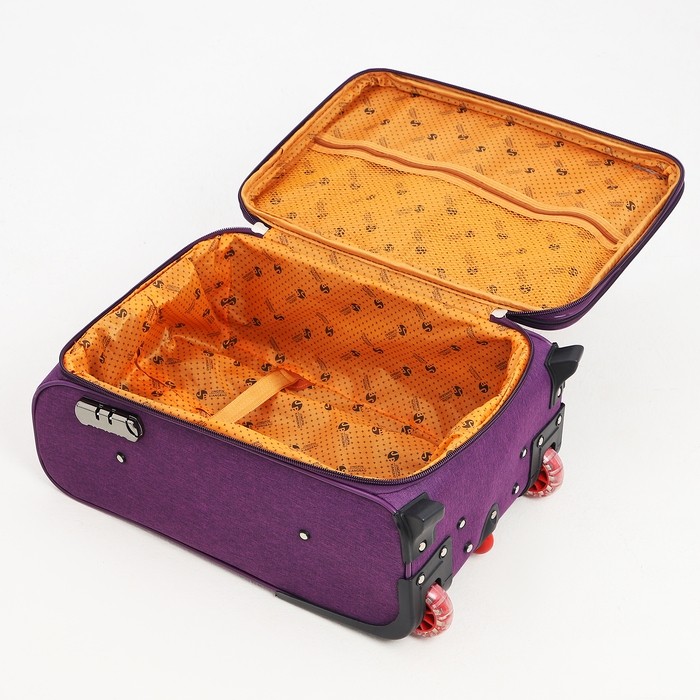Чемодан малый 20", отдел на молнии, с расширением, кодовый замок, 3 колеса, 2 наружных кармана, цвет фиолетовый