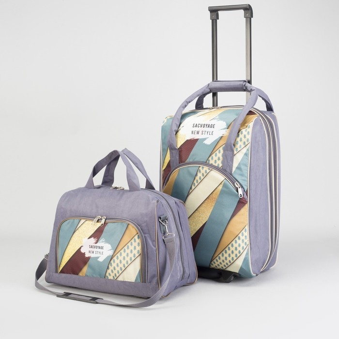 Чемодан малый 20" с сумкой, отдел на молнии, наружный карман, цвет серый