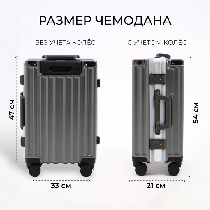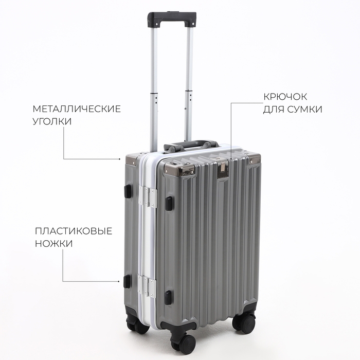 Чемодан малый 37 л (S), отдел на молнии, 2 кодовых замка, 4 колеса, крючок, цвет серый