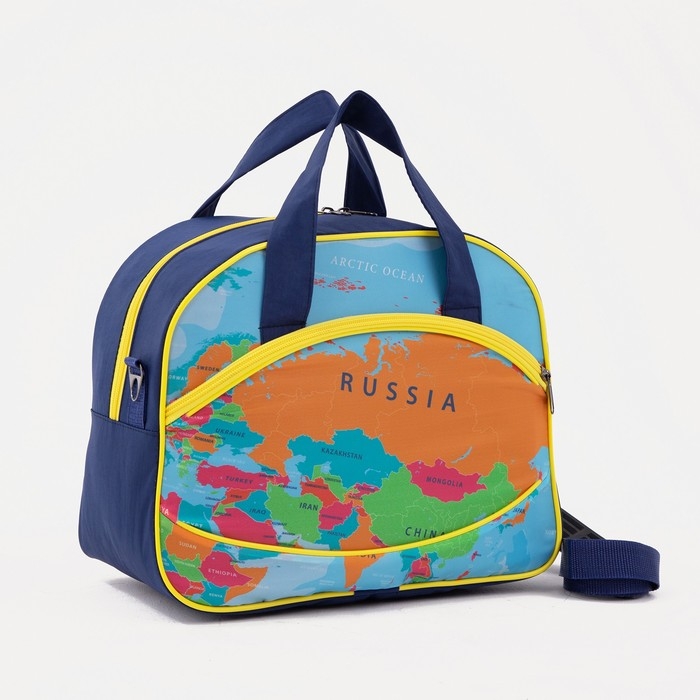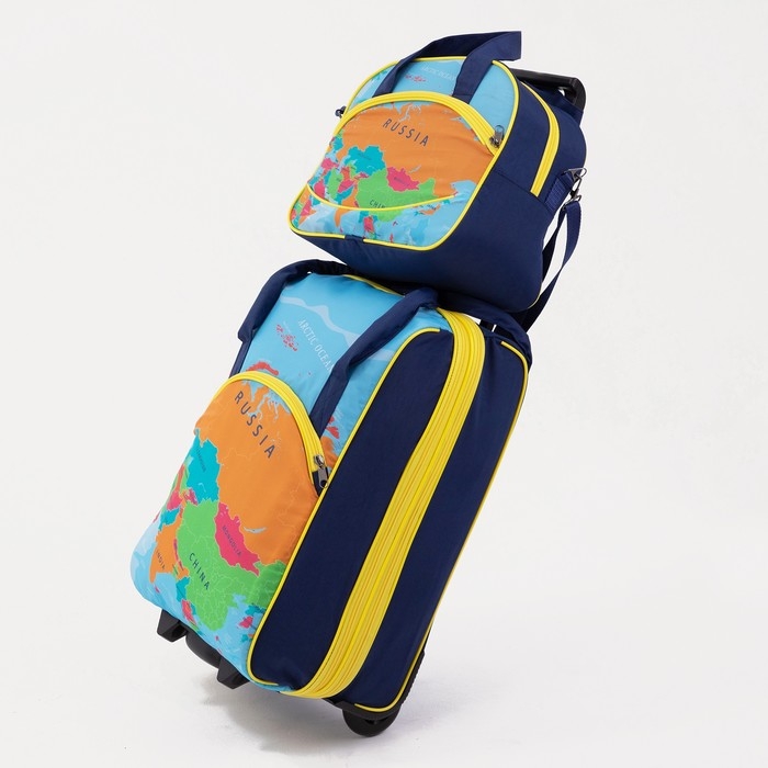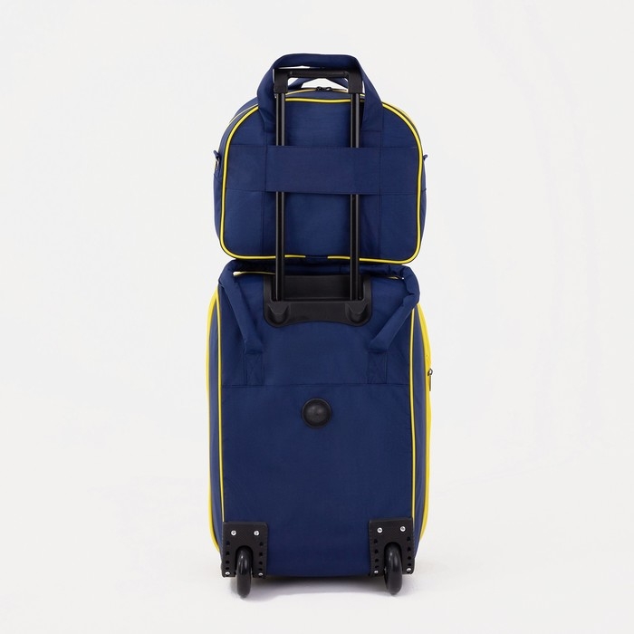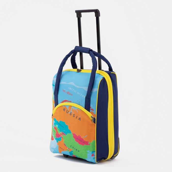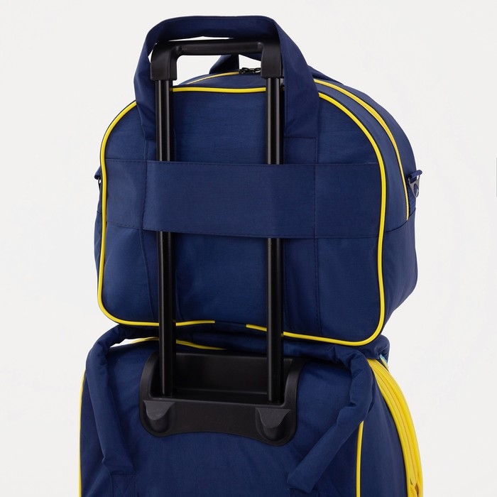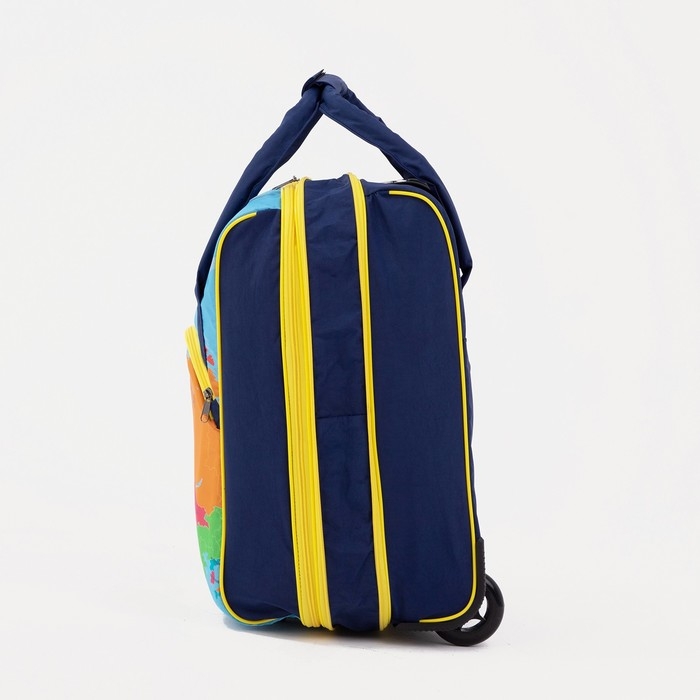 Чемодан малый 37 л (S), с расширением, сумка дорожная на молнии, цвет синий/оранжевый