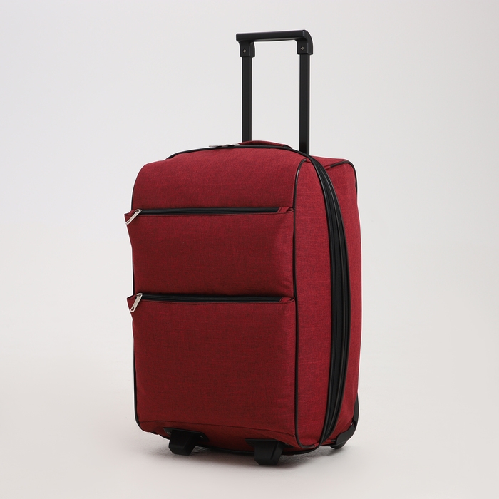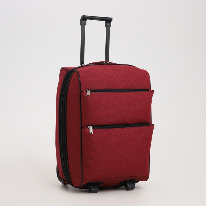 Чемодан малый 52 л (S), «Фабрика КАРТЕКС», отдел на молнии, с расширением, наружный карман, 2 колеса, цвет бордовый