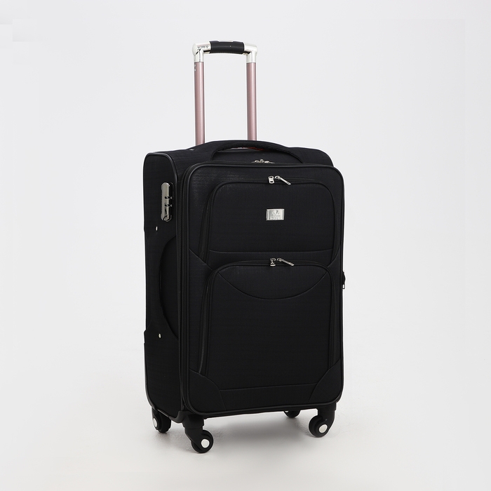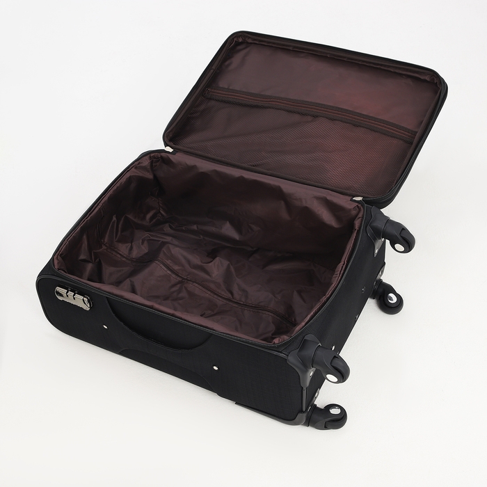 Чемодан средний 52 л (M), отдел на молнии, кодовый замок, с расширением, цвет чёрный