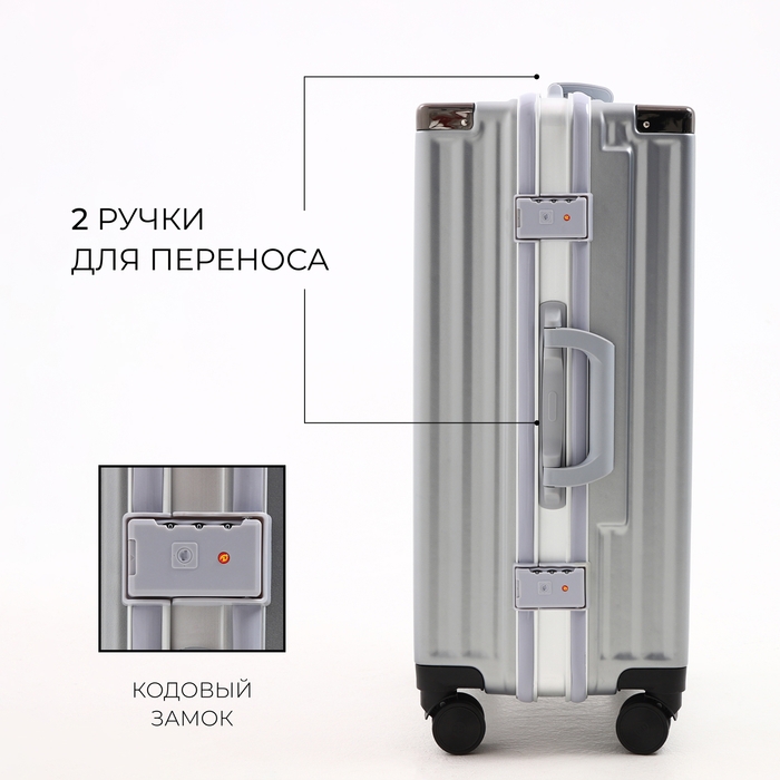 Чемодан средний 55 л (M), отдел на молнии, 2 кодовых замка, 4 колеса, крючок, цвет серебряный