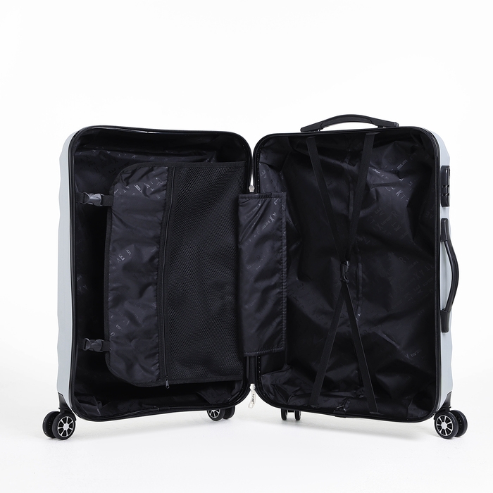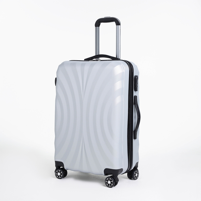 Чемодан средний 60 л (M), «Фабрика КАРТЕКС», отдел на молнии, кодовый замок, 4 колеса, цвет серый