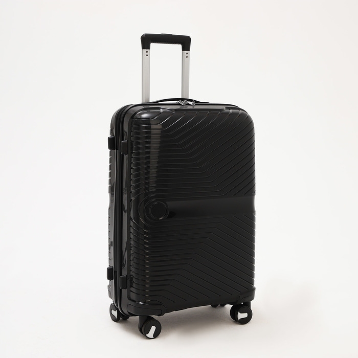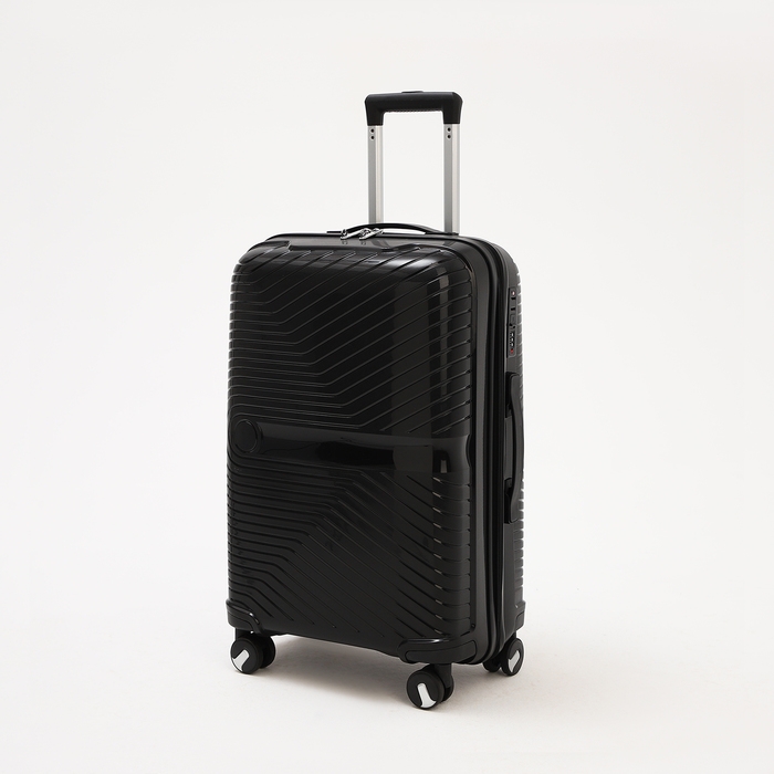 Чемодан средний 69 л (M), отдел на молнии, кодовый замок, 4 колеса, цвет чёрный