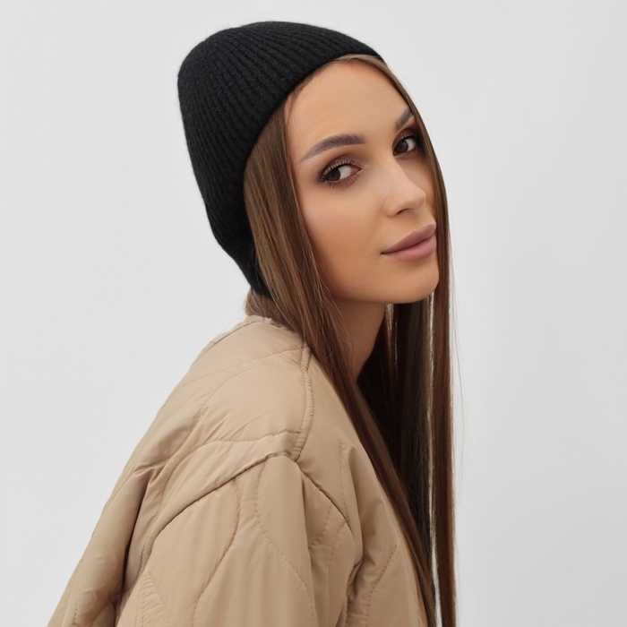 Чепчик женский MIST с шерстью кролика, р-р 56 см, черный