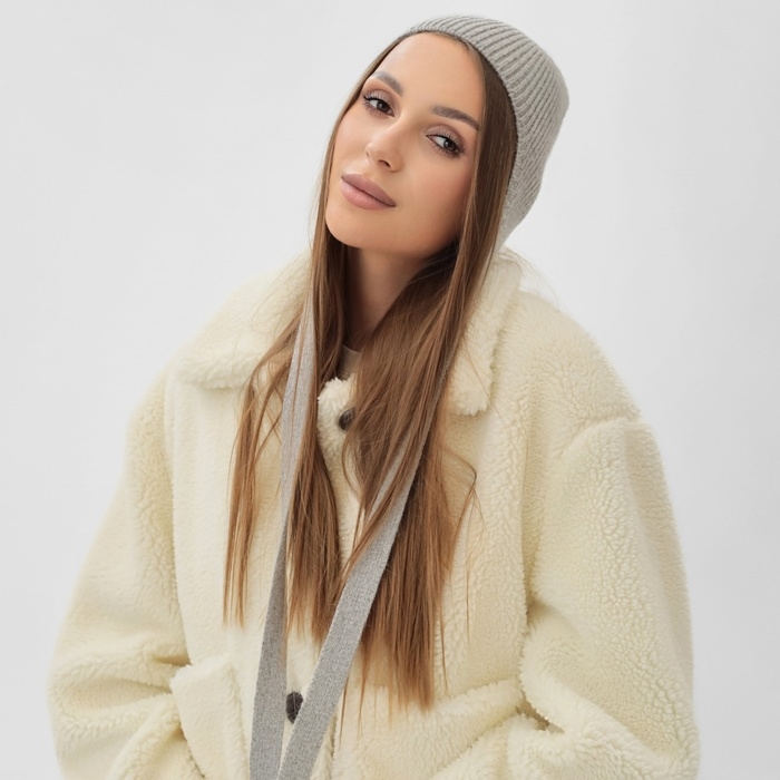 Чепчик женский MIST с шерстью кролика, р-р 56 см серый