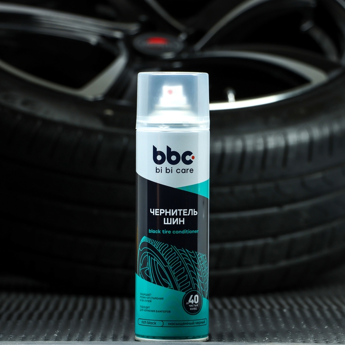 Чернитель шин BiBiCare способен вернуть изначальный цвет и блеск покрышкам, а также подходит для обработки бамперов автомобилей.