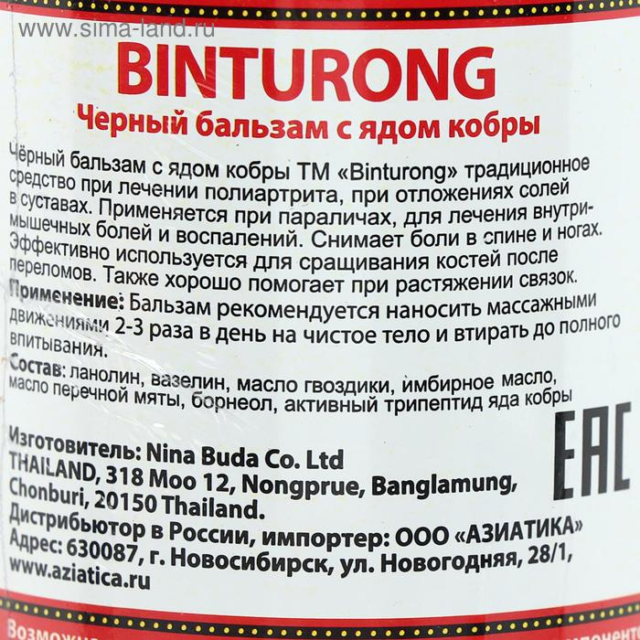 Чёрный бальзам с ядом кобры Binturong, при внутримышечных болях и воспалениях, 50 г