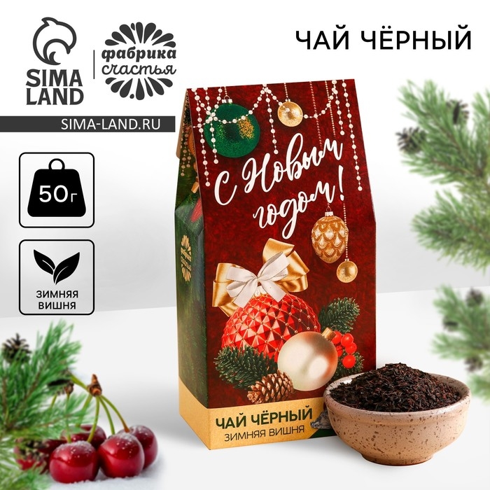Чёрный чай «С новым годом», вкус: зимняя вишня, 50 г.