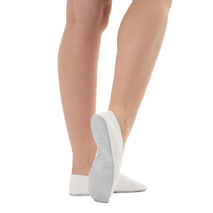 Чешки подходят для занятий танцами, гимнастикой и спортом. Подошва из натуральной кожи не скользит на гладком паркете и обеспечивает хорошее сцепление с площадкой. Широкая мягкая резинка крепко удерживает стопу, с ней чешки плотно сидят на ноге. Нейтральный цвет подойдёт любому костюму.