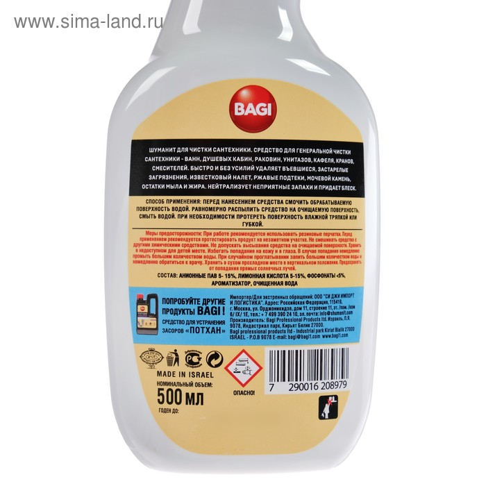 Чистящее средство Bagi "Шуманит", спрей, для сантехники, 500 мл