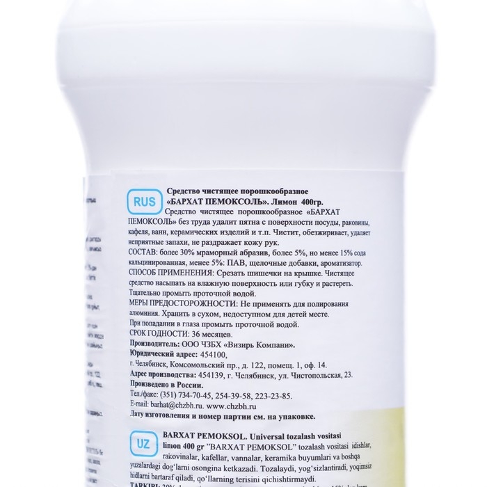 Чистящий порошок "Бархат Пемоксоль", лимон, 400 г
