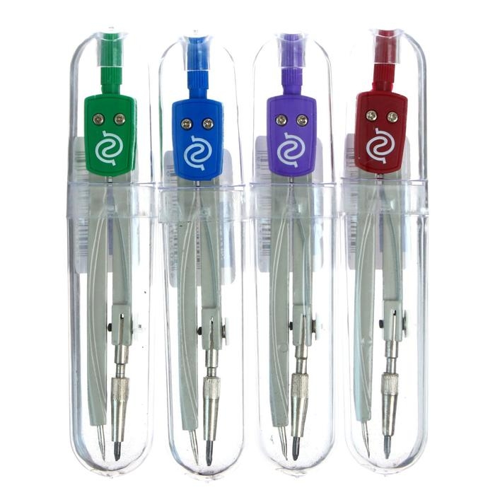 Циркуль металлический 115 мм в пластиковой тубе, с защитным колпачком на иголке, МИКС