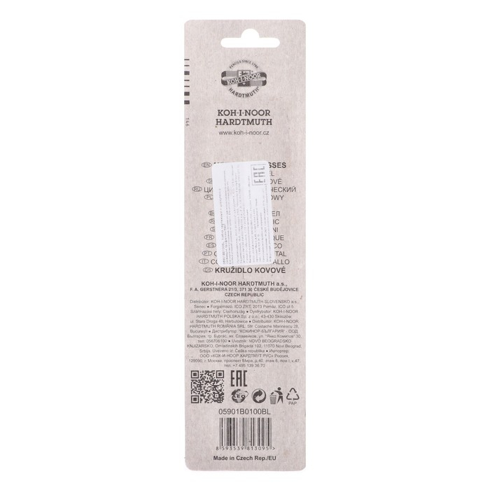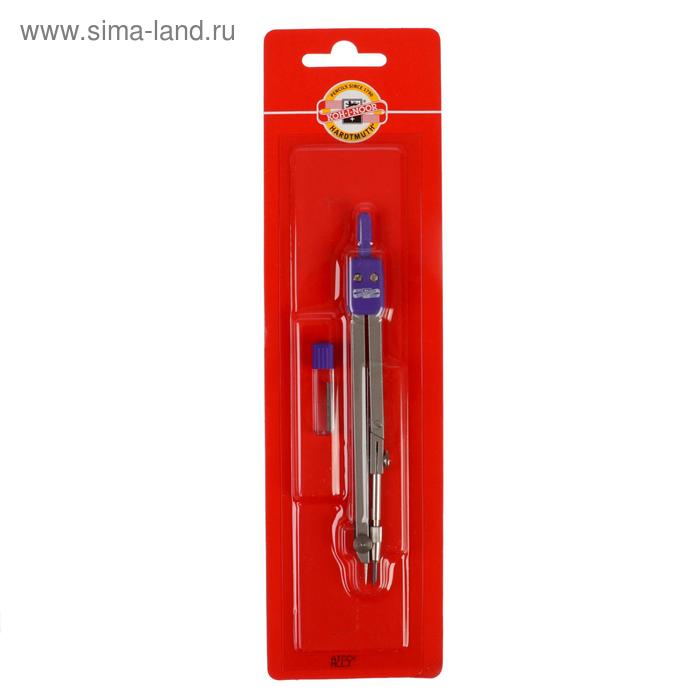 Циркуль металлический Koh-I-Noor 5901, 122 мм + контейнер с грифелем, серебристый, в блистере с европодвесом