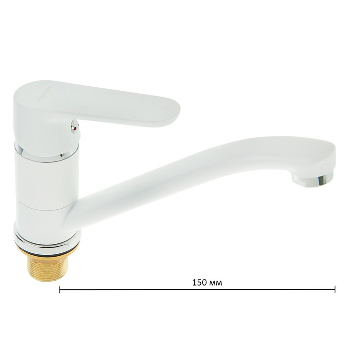 Cмеситель для кухни Accoona A4266G, однорычажный, средний излив, с гайкой, силумин, белый