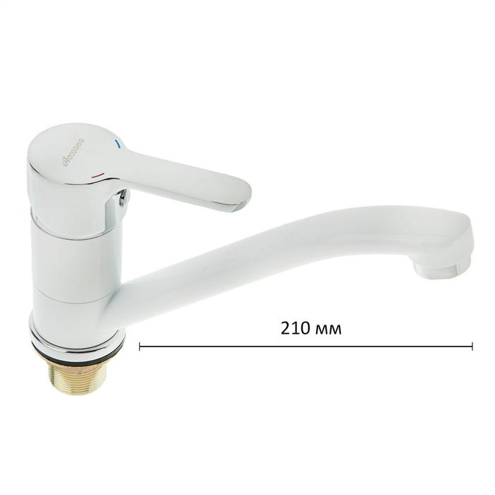 Cмеситель для кухни Accoona A4267G, однорычажный, средний излив, с гайкой, силумин, белый
