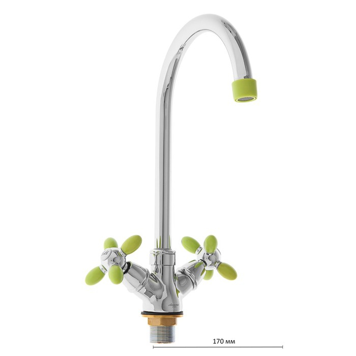 Cмеситель для кухни Accoona A4582K, двухрычажный, поворотный излив, зеленый/хром