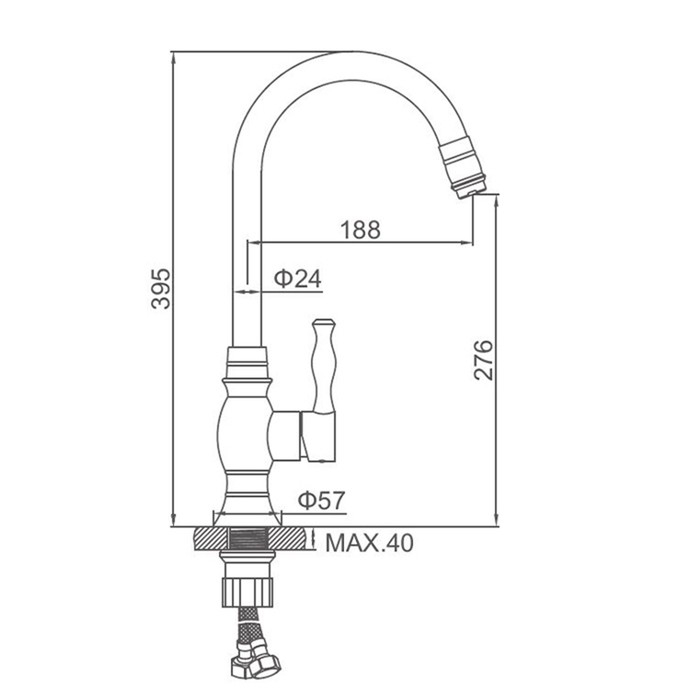 Cмеситель для кухни Accoona A4592, однорычажный, силумин, хром