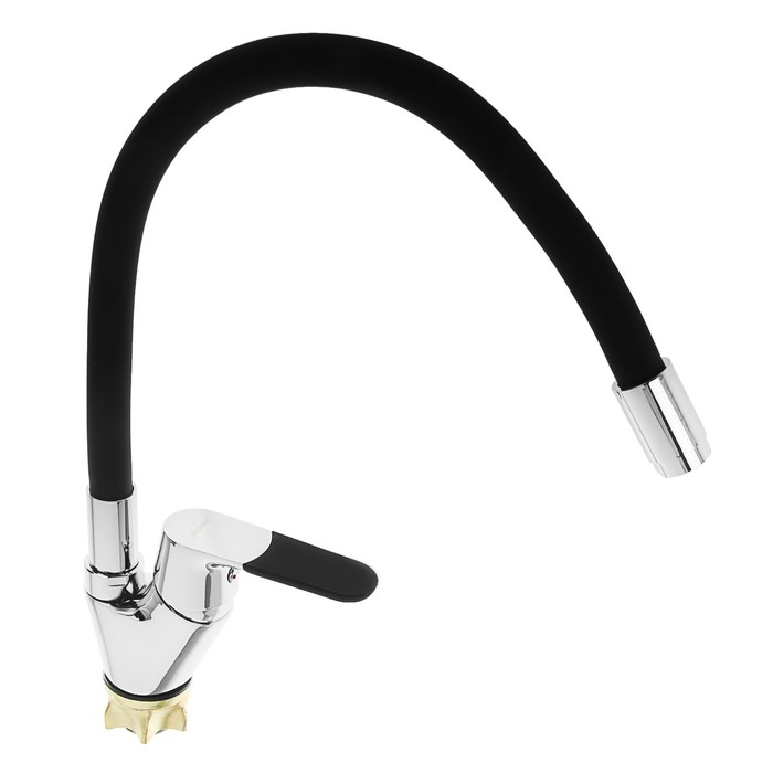 Cмеситель для кухни Accoona A4819F, однорычажный, силиконовый излив, латунь, чёрный/хром