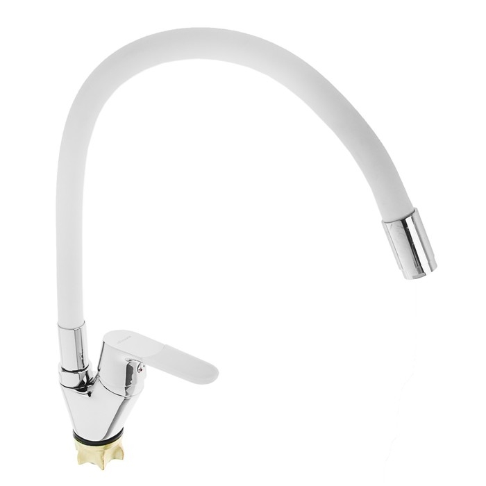 Cмеситель для кухни Accoona A4819G, однорычажный, силиконовый излив, латунь, белый/хром