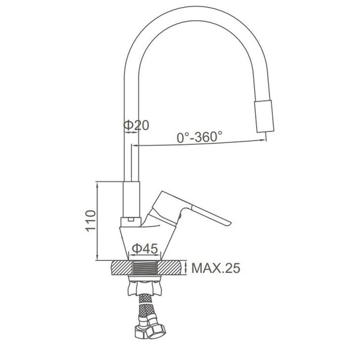 Данный смеситель оснащён аэратором для снижения уровня шума и экономичного расхода воды.