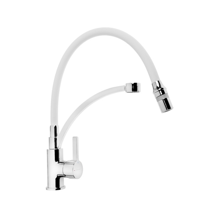 Cмеситель для кухни Accoona A4890G-3, однорычажный, силиконовый излив, латунь, белый, хром