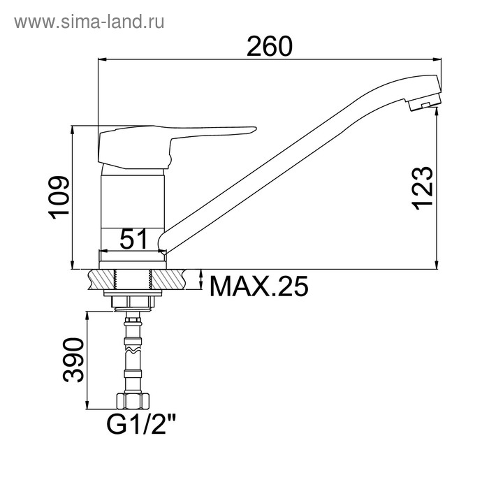 Cмеситель для кухни Accoona A5142, однорычажный, силумин, хром