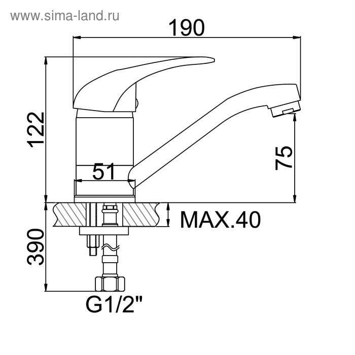 Cмеситель для кухни Accoona A5240, однорычажный, силумин, хром