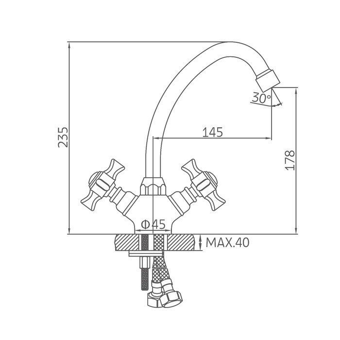 Cмеситель для кухни Accoona A5670, двухвентильный, латунь, хром
