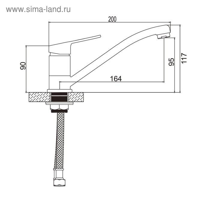 Cмеситель для кухни Accoona A84250, однорычажный, средний излив, с гайкой, силумин, хром
