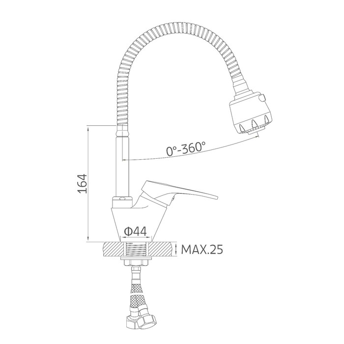 Cмеситель для кухни Accoona A84850, однорычажный, гибкий излив, силумин, хром