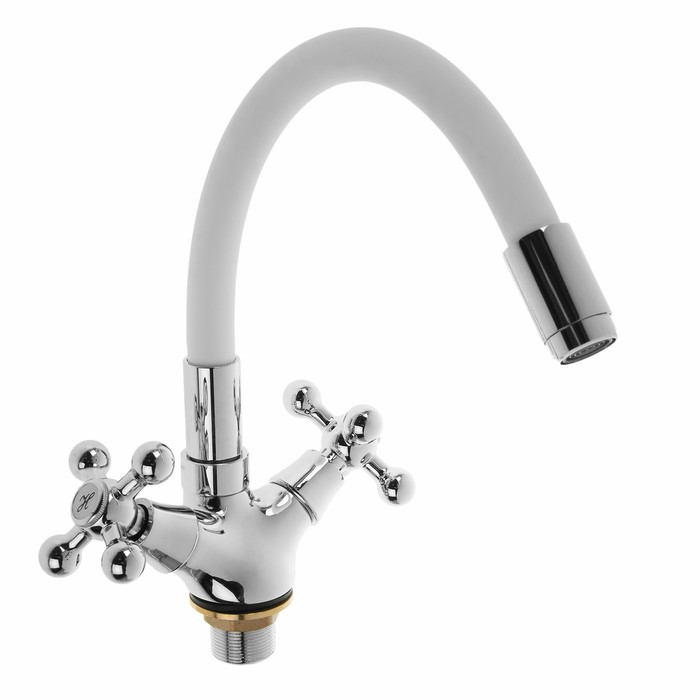 Cмеситель для кухни Accoona A9871G, двухвентильный, силиконовый излив, силумин, белый/хром