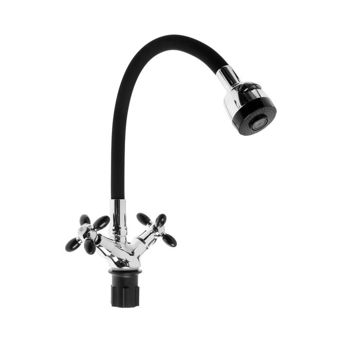 Cмеситель для кухни "Эверест" B57-071F, двухвентильный, гибкий излив, на гайке, хром/черный