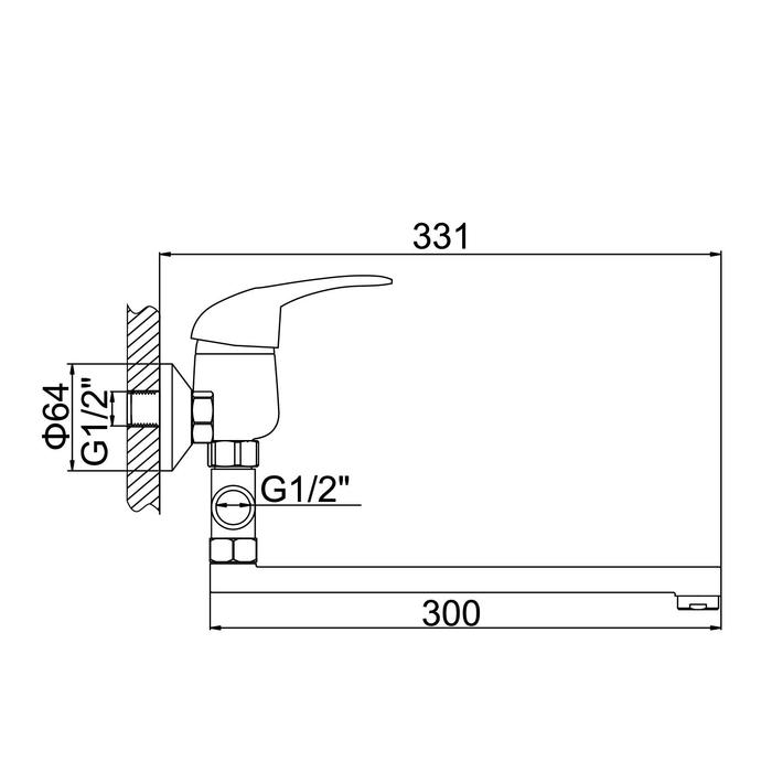 Cмеситель для ванны Accoona A7040, однорычажный, силумин, хром