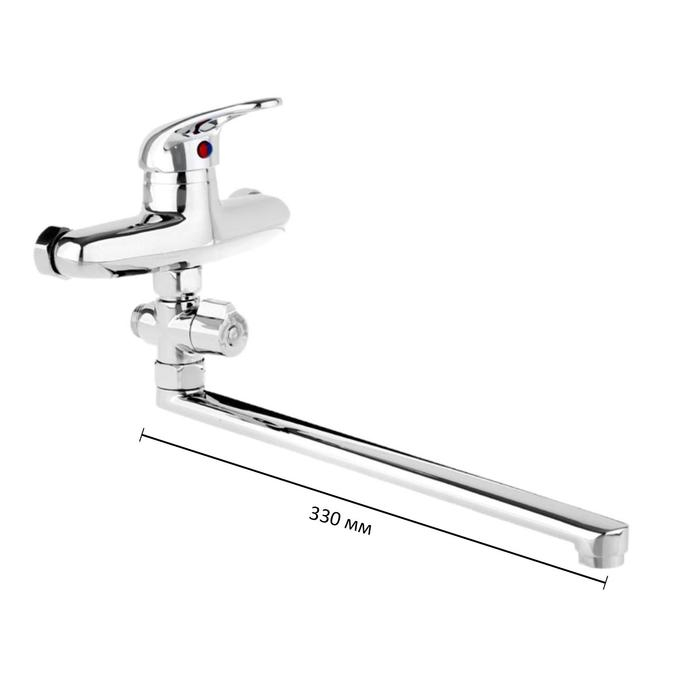 Cмеситель для ванны Accoona A7060, однорычажный, излив 300 мм, с душевым набором, хром