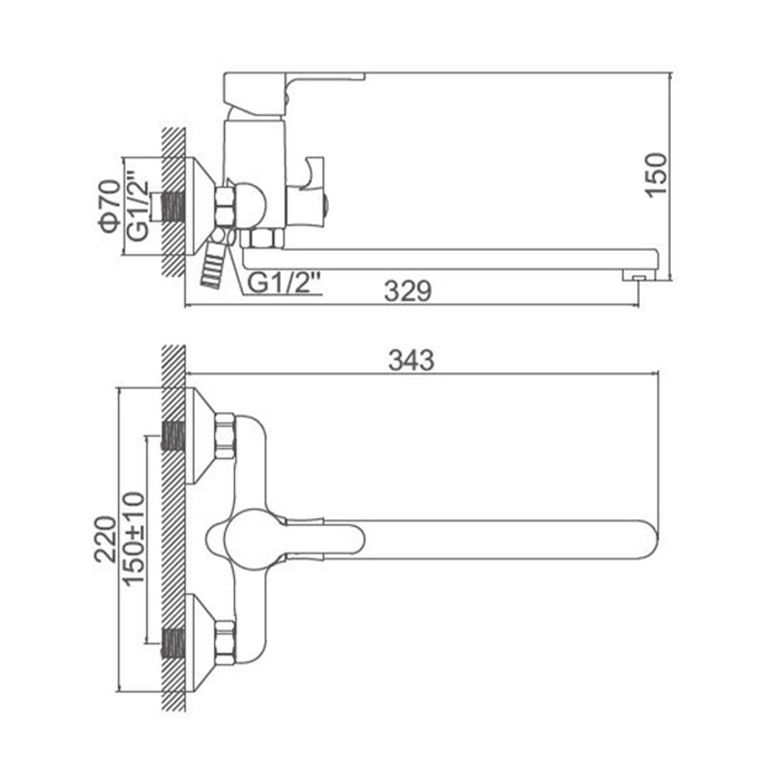 Cмеситель для ванны Accoona A7167G, однорычажный, излив 300 мм, силумин, белый